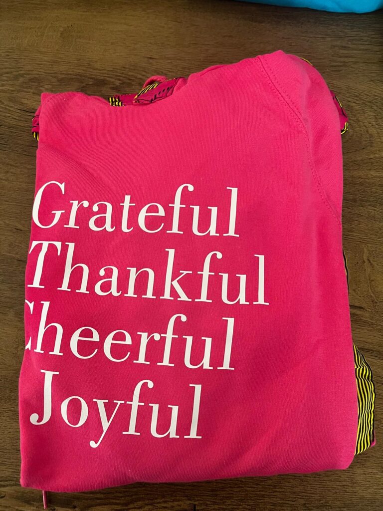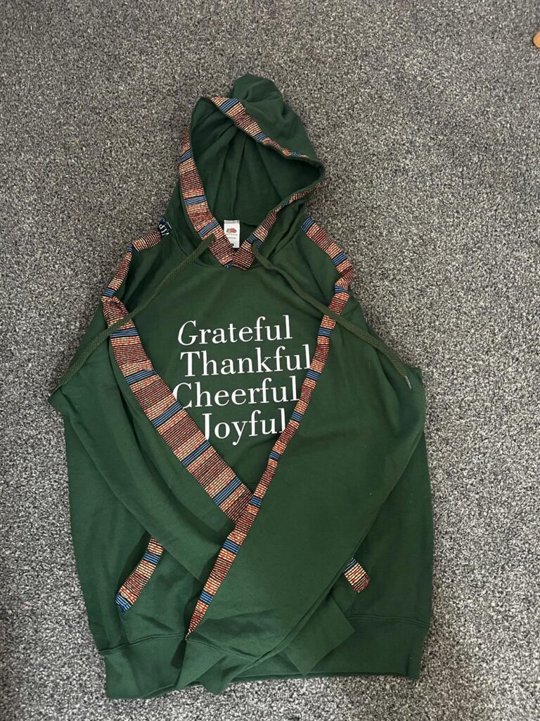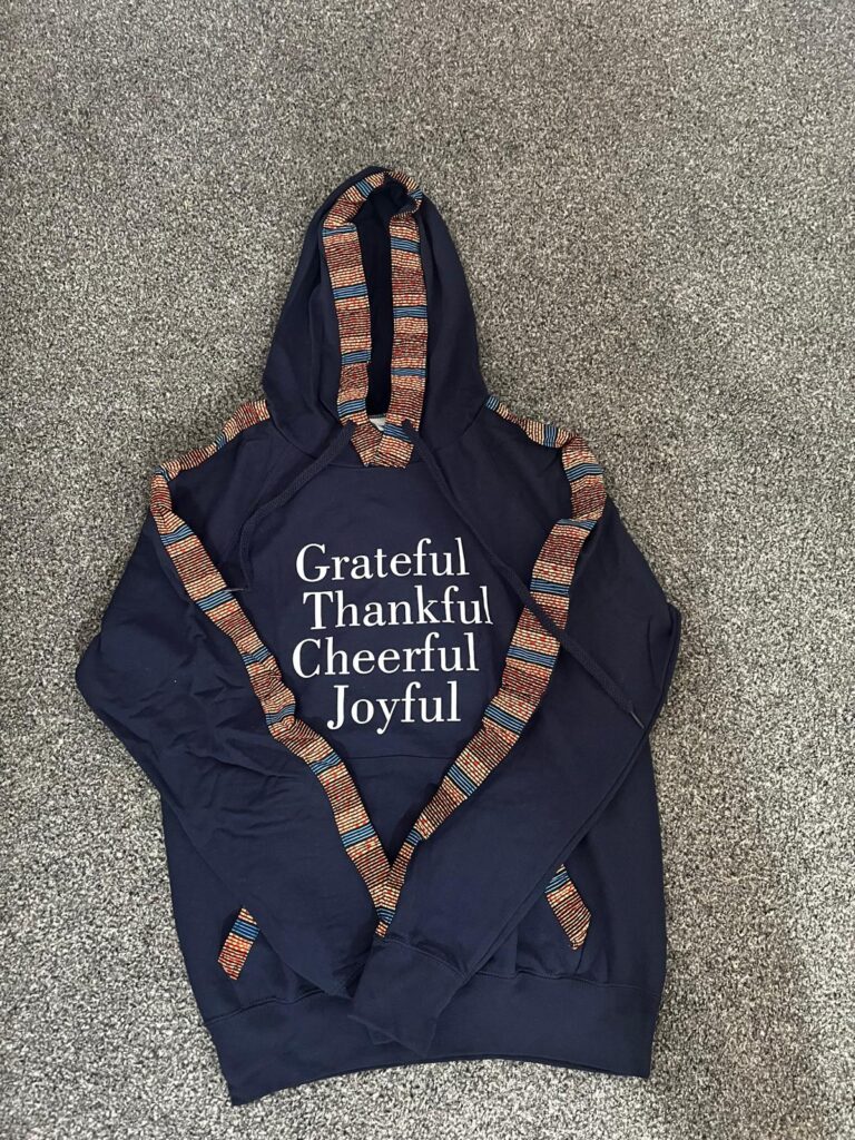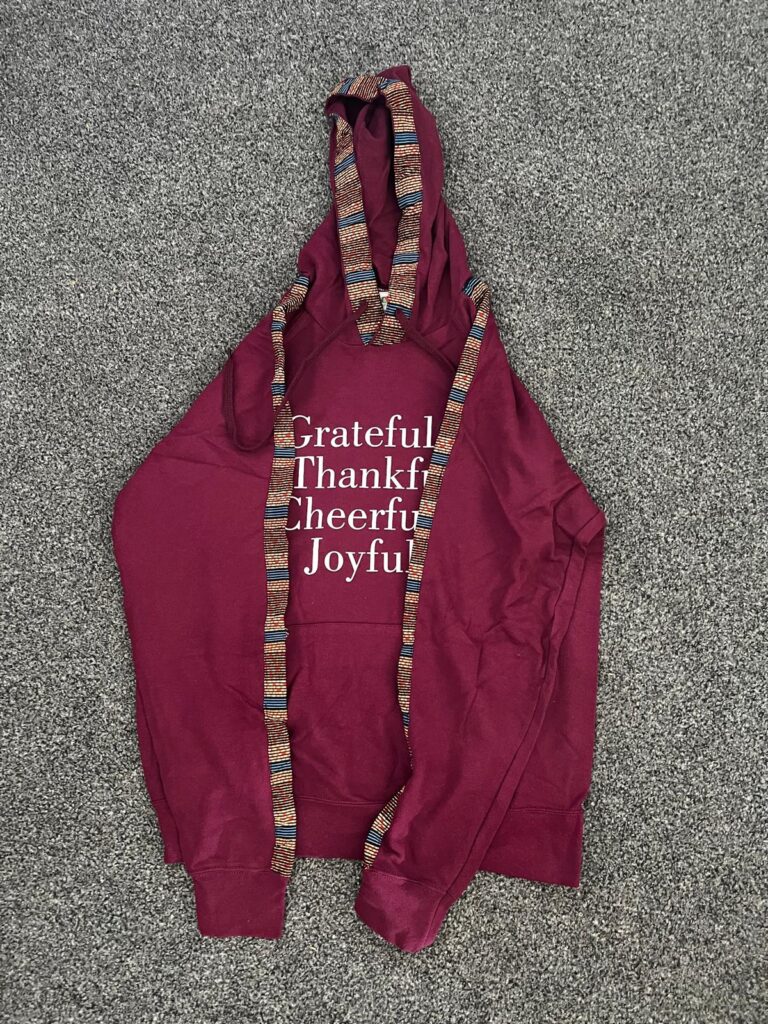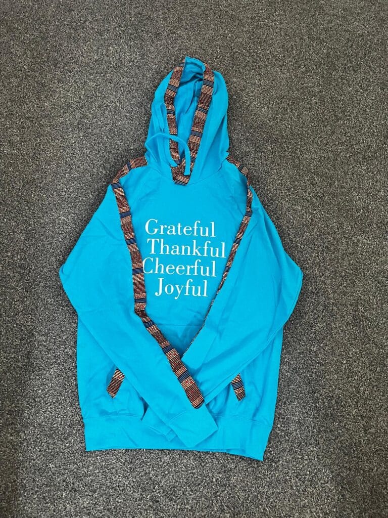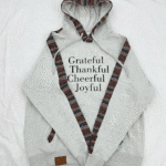 Wrap yourself in the soft, breathable comfort of 100% cotton with our signature “Grateful, Thankful, Cheerful, Joyful” hoodie. This hoodie is designed for all-day wear, offering a cozy yet light feel.